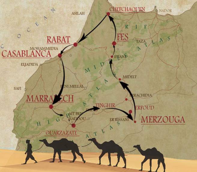 Upon arrival at Mohamed V airport of Casablanca, transfer to the hotel with our receptionist’s assistance. The hotel check-in time is after 3pm.