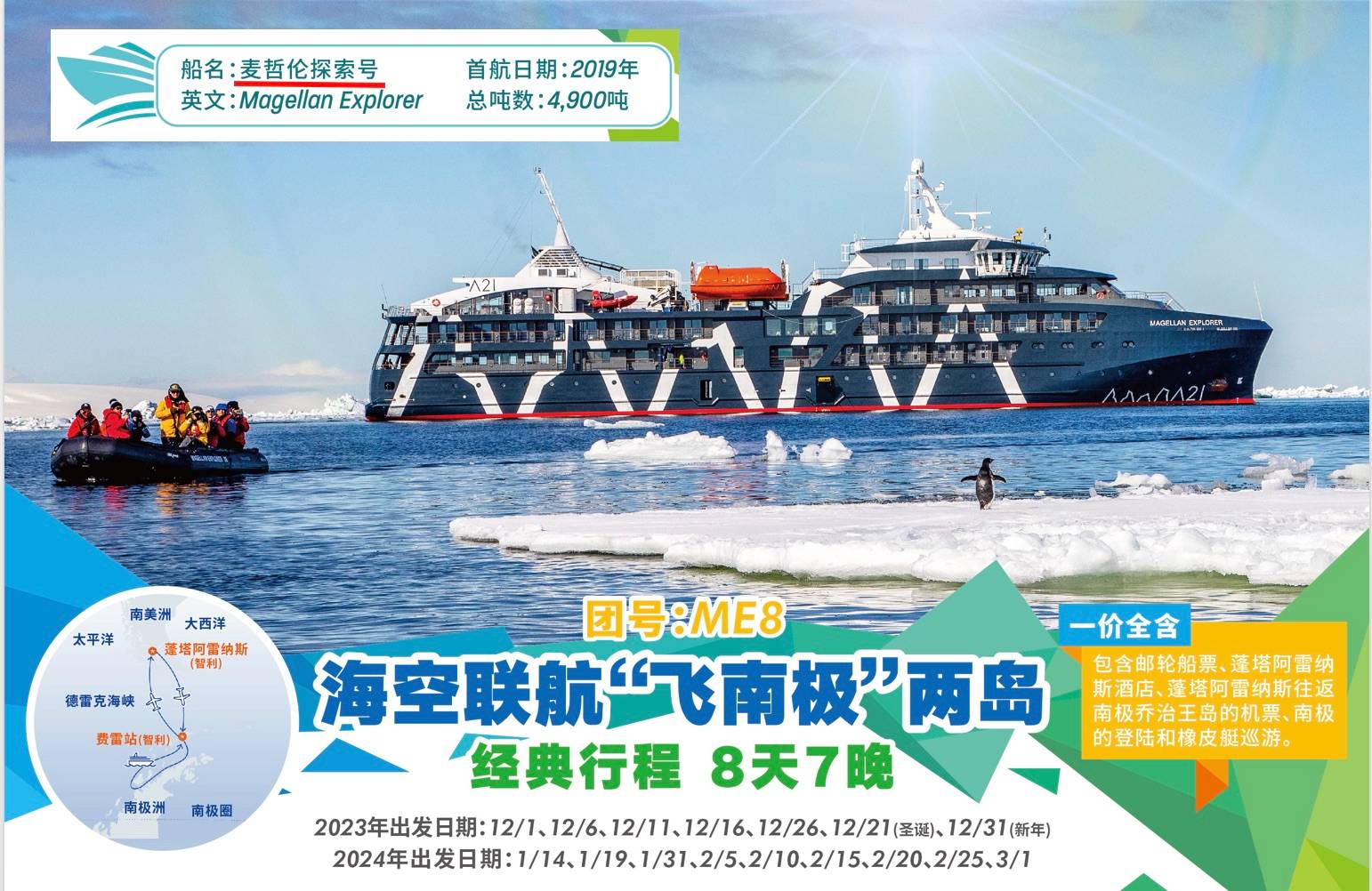 5. 从南极按计划返航当天的机场/酒店的团体接机,以及行程最后一天酒店/机场团体送机。